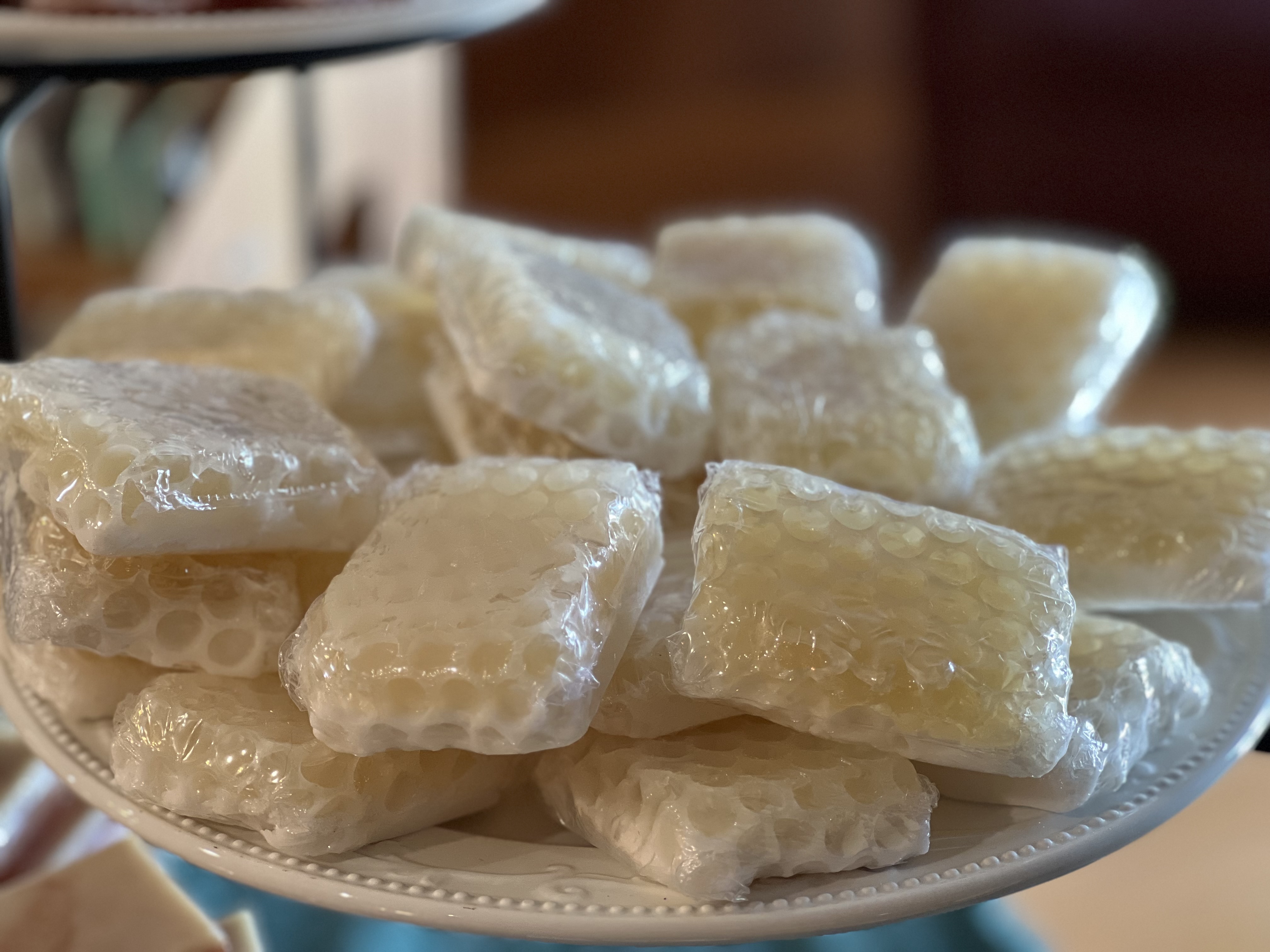 Gently crafted with honey and goat's milk, shaped like a natural honeycomb slice.