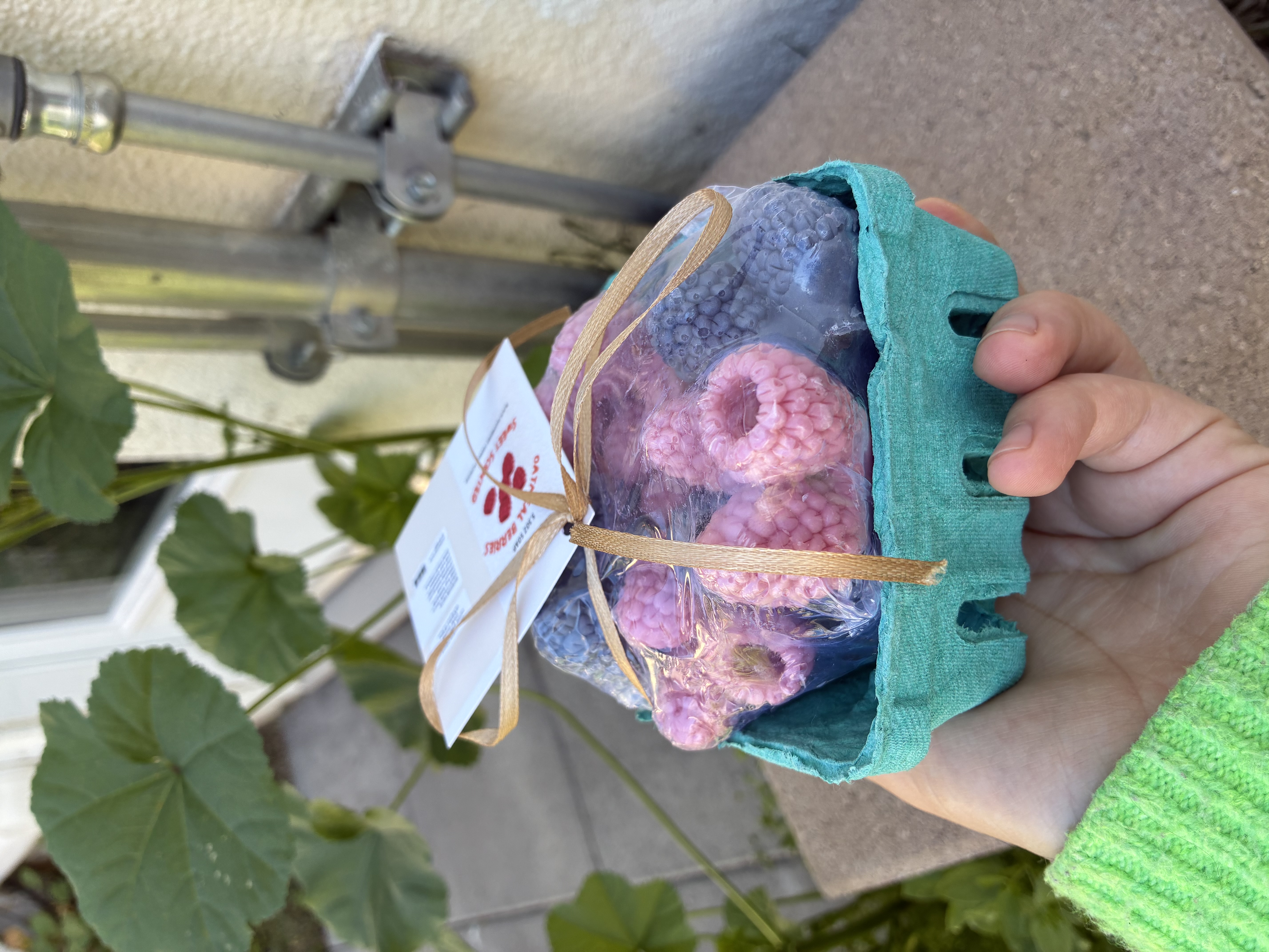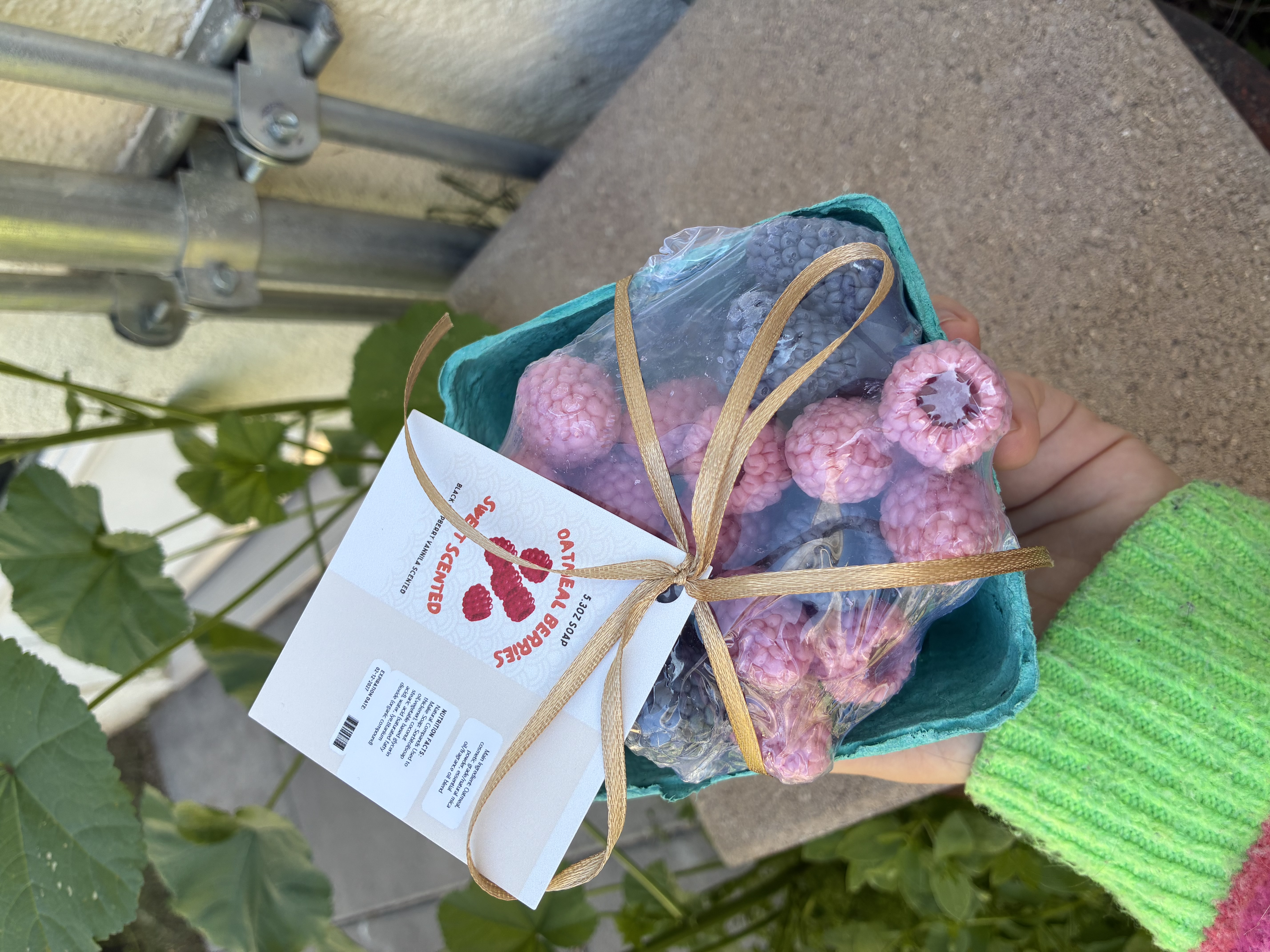 Cute raspberry-shaped soaps made with oatmeal and scented with black raspberry vanilla.